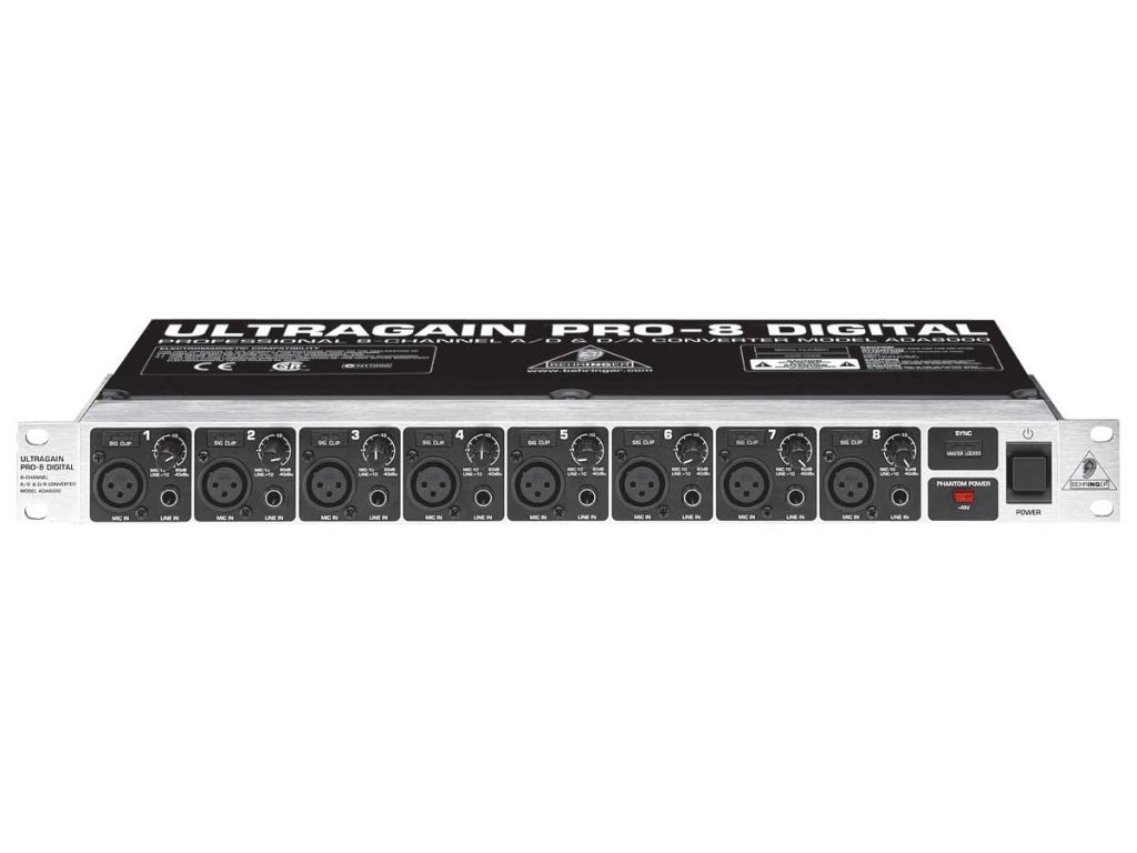 ULTRAGAIN PRO-8 DIGITAL 8-kanálový 24-Bit A/D & D/A převodník s optickým ADAT® rozhraním, 8 mik. předzesilovačů, phantomové nap., zpracovává 44.1 a 48 kHz, možnost externí synchronizace Wordclock nebo ADAT®